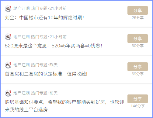 平台中更新楼市热文