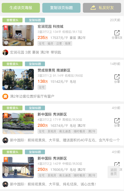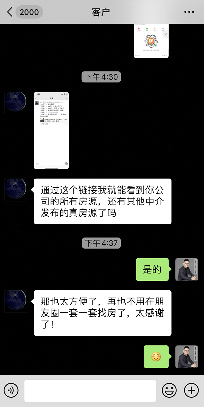 客户再也不用通过朋友圈去看,他可以通过你给的链接去搜索你公司所有的房源和平台里其他公司的房源