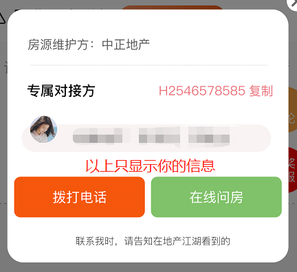 客户进入到你的平台,看到你合作进来的房源电话,皆显示您的电话