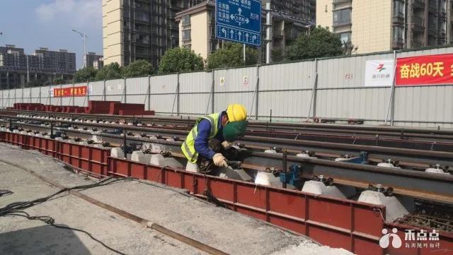 在市区庆丰路有轨电车施工现场,七十多米长的钢轨已经精准落位,工人们正头顶烈日,用扣件把钢轨牢牢固定在轨枕上,有轨电车的轨道由平行的两根钢轨组成,轨距1.435米,不能有丝毫误差,