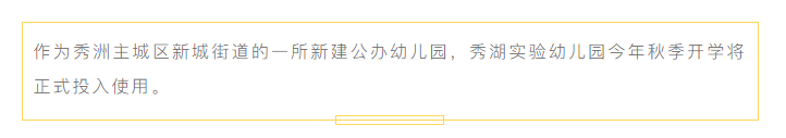 随着秀湖实验幼儿园的投入使,将极大的缓解秀洲主城区幼儿入学问题。