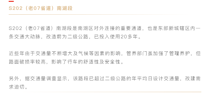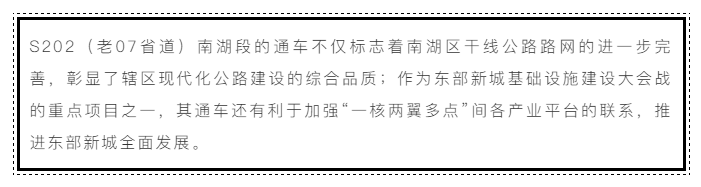 由于该项目投资较大,涉及省市区多个部门,整治过程中,南湖区相关部门和乡镇属地通力配合,积极克服前期准备、主体工程施工、附属设施建设等环节中遇到的困难,最终迎来通车时刻。