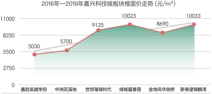 2016年中铁建创下的10040元/㎡楼面价,一直是嘉兴近几年的熔断封顶价,精装修备案价22500元/㎡目前尚未突破。