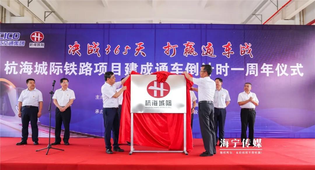 现场,杭海城际铁路LOGO也正式与大家见面,logo以红色椭圆形图案为底,寓意杭海两地“一小时经济圈”“融杭都市圈”和“不是杭州、就在杭州”的生活圈、通勤圈。