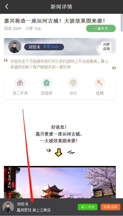 2:新的文章详情模板,融入自定义房源广告,底部自己广告浮窗展示