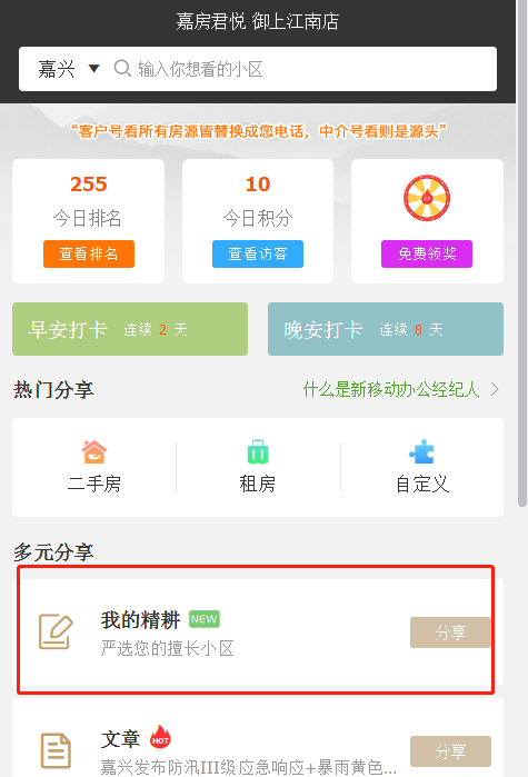 3:精耕小区,每天监控管理自己擅长小区,并一键分享