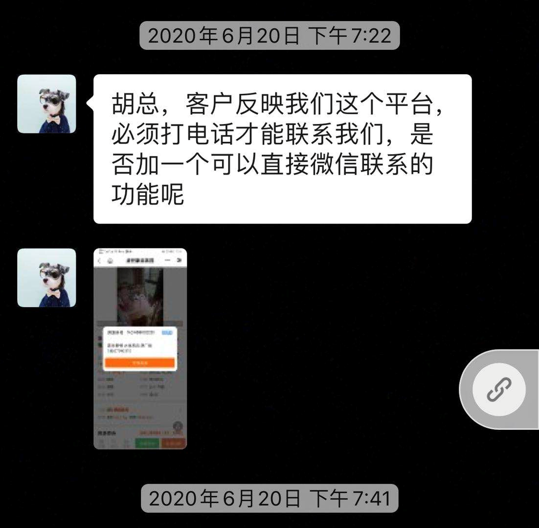 另外,根据这名用户的需求,我们小程序板块,今天也增加了微信联系功能