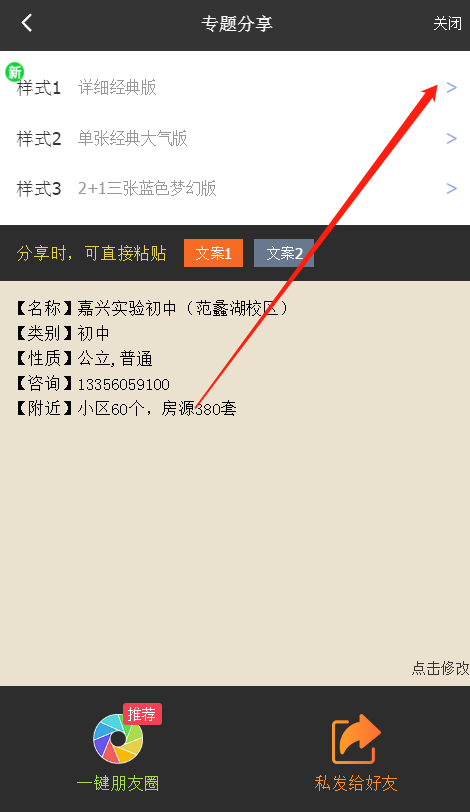 就是这段文案,有时候也可以选择文案2,看个人喜好,电话会自动替换成您自己的电话